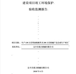 2018年6月20日,金乡县强力机械有限公司根据《金乡县强力机械有限公司年产130万套柴油机配件及200万套机械产品总成生产项目竣工环境保护验收报告》,并对照《建设项目竣工环境保护验收暂行办法》(国环规环评[2017]4号),严格依照国家有关法律法规、建设项目竣工环境保护验收技术规范、项目环境影响评价报告表和审批部门审批决定等要求,聘请了三位环保专家对项目进行验收,专家通过认真查看现场、查阅有关资料并提出如下意见: